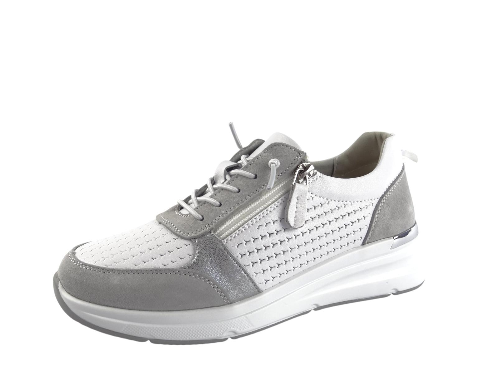 Dámské kožené sneakers Aurelia s funkčním zipem a elastickými tkaničkami – WHITE