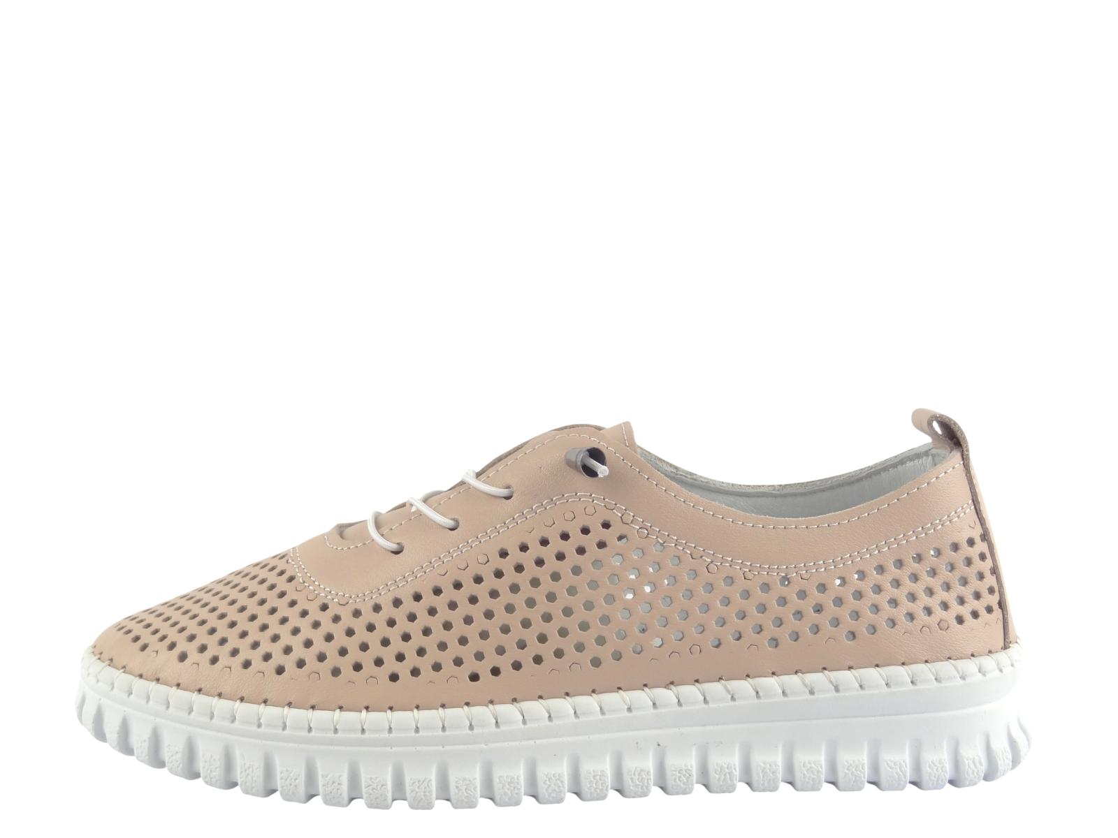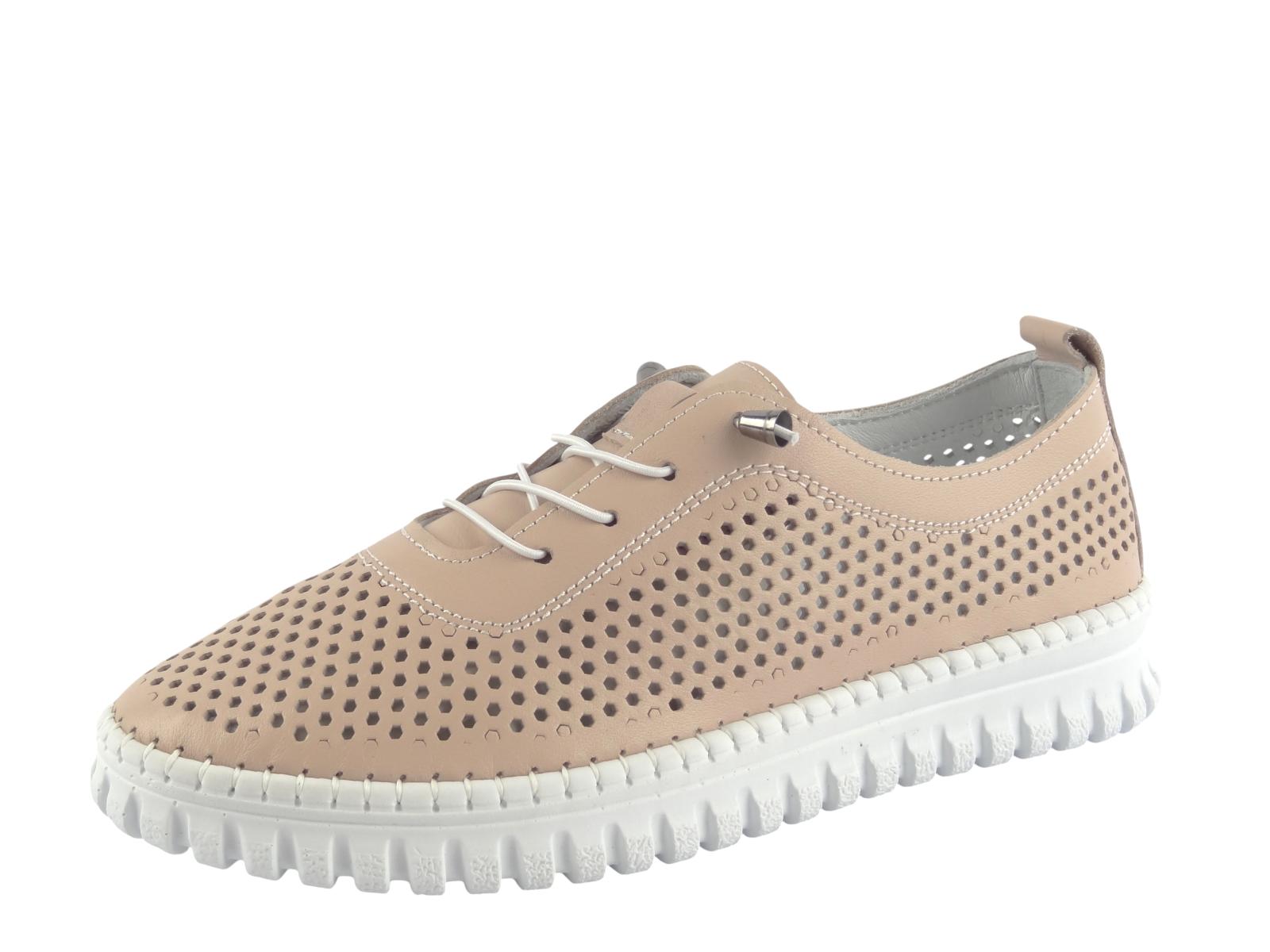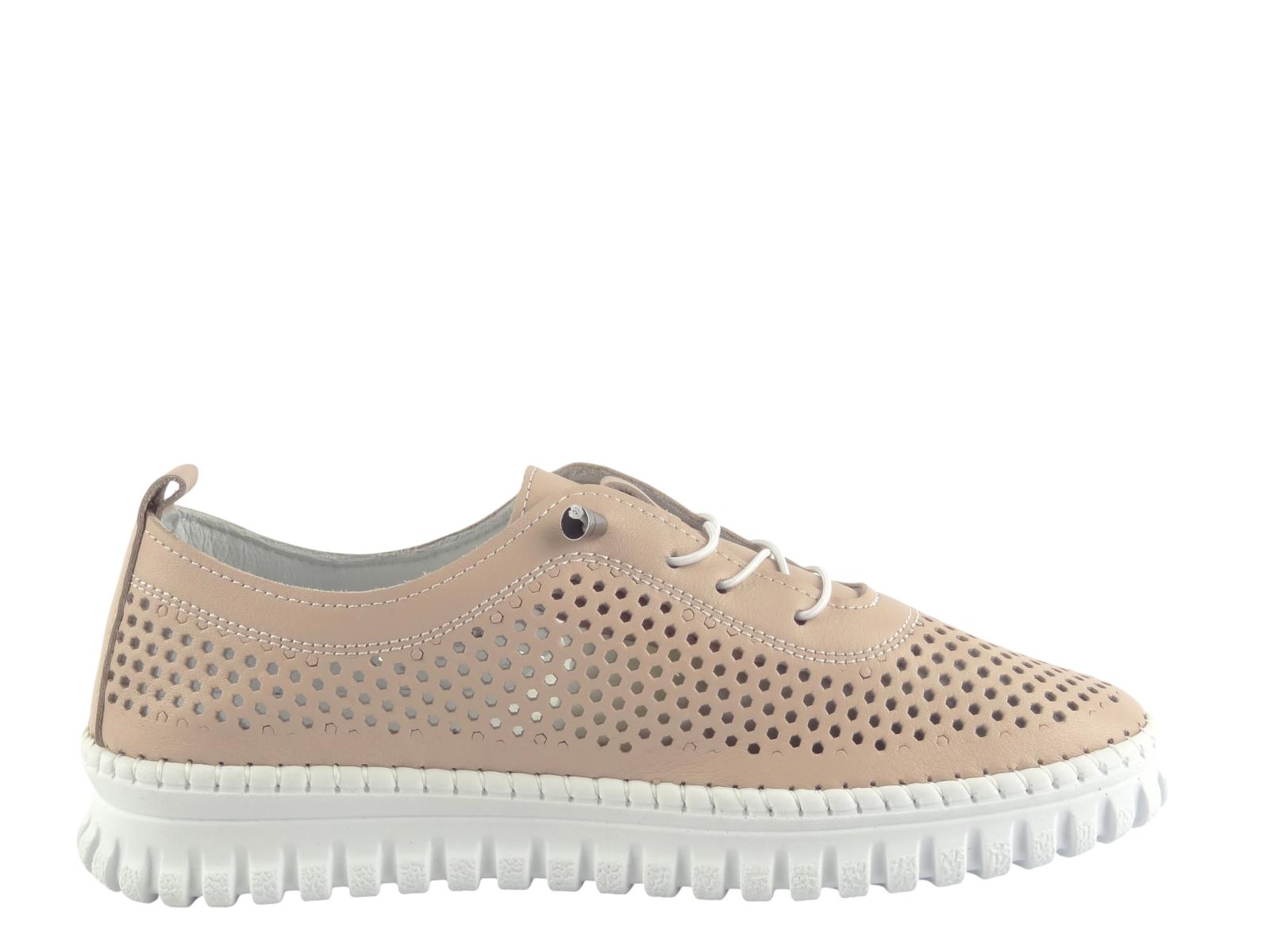 Dámské kožené polobotky Aurelia s designovou perforací – maximální lehkost v pudrové