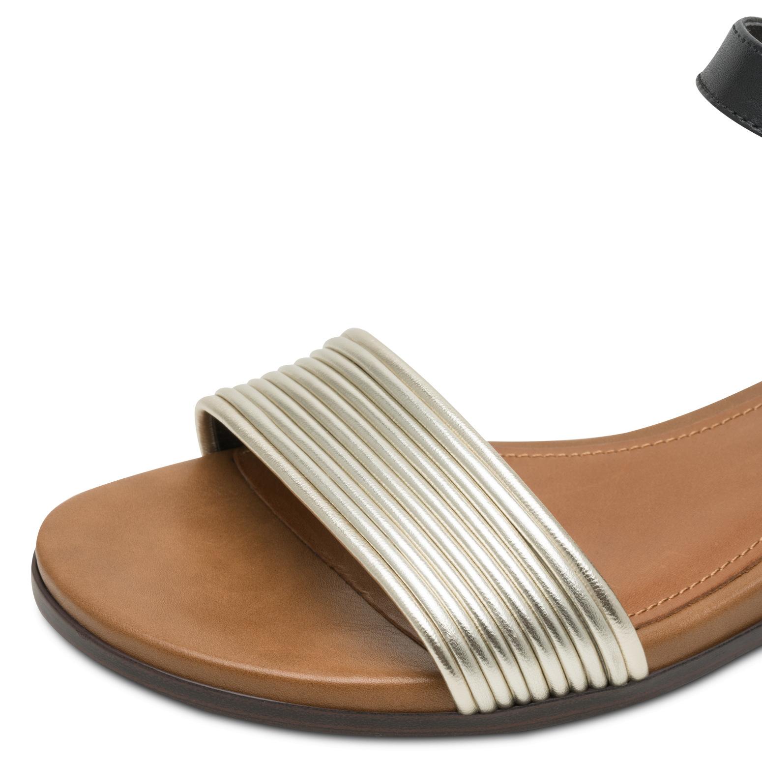 - Kvalitní materiály: Svršek kombinuje prvotřídní hladkou kůži v zadní části s dekorativním metalickým páskem v přední části.