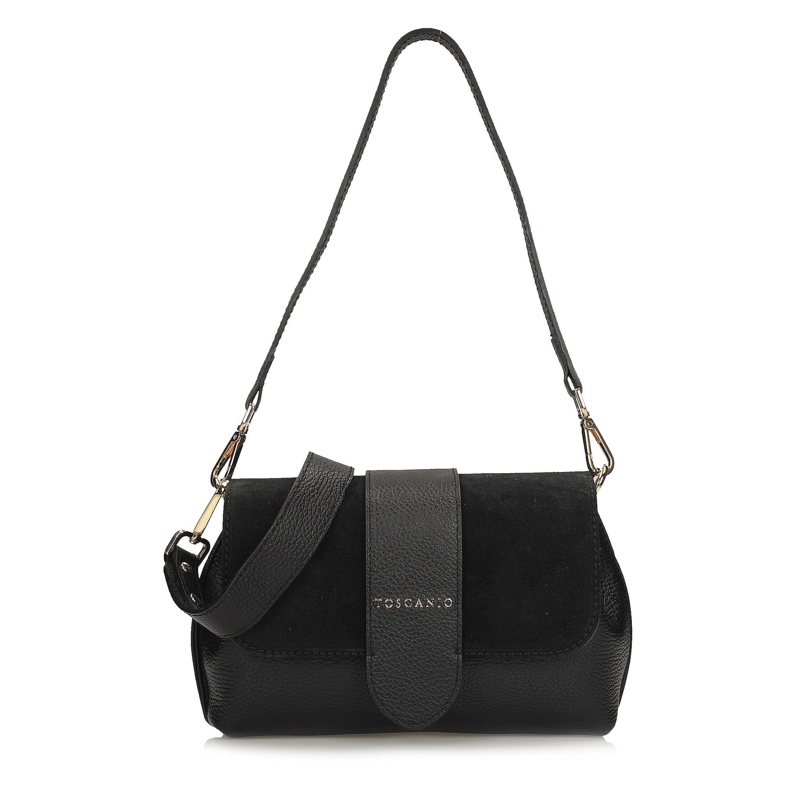 Tato luxusní italská kabelka značky Toscanio (model TOS G152) představuje dokonalou rovnováhu mezi klasickým stylem a moderními detaily. Ačkoliv popisek zmiňuje hnědou variantu, technické parametry potvrzují, že se jedná o nadčasové černé provedení, které doplňuje elegantní zlaté kování.
