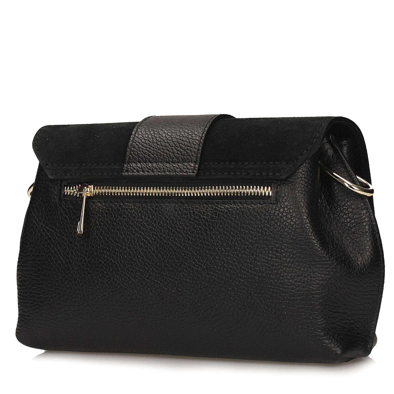 Kabelka je vyrobena z prvotřídní přírodní kůže. Unikátním prvkem je klopa s semišovou vsadkou, která dodává doplňku hloubku a sofistikovaný vzhled. Vnitřek je pro vyšší komfort a odolnost vypodšívkován jemnou tkaninou.